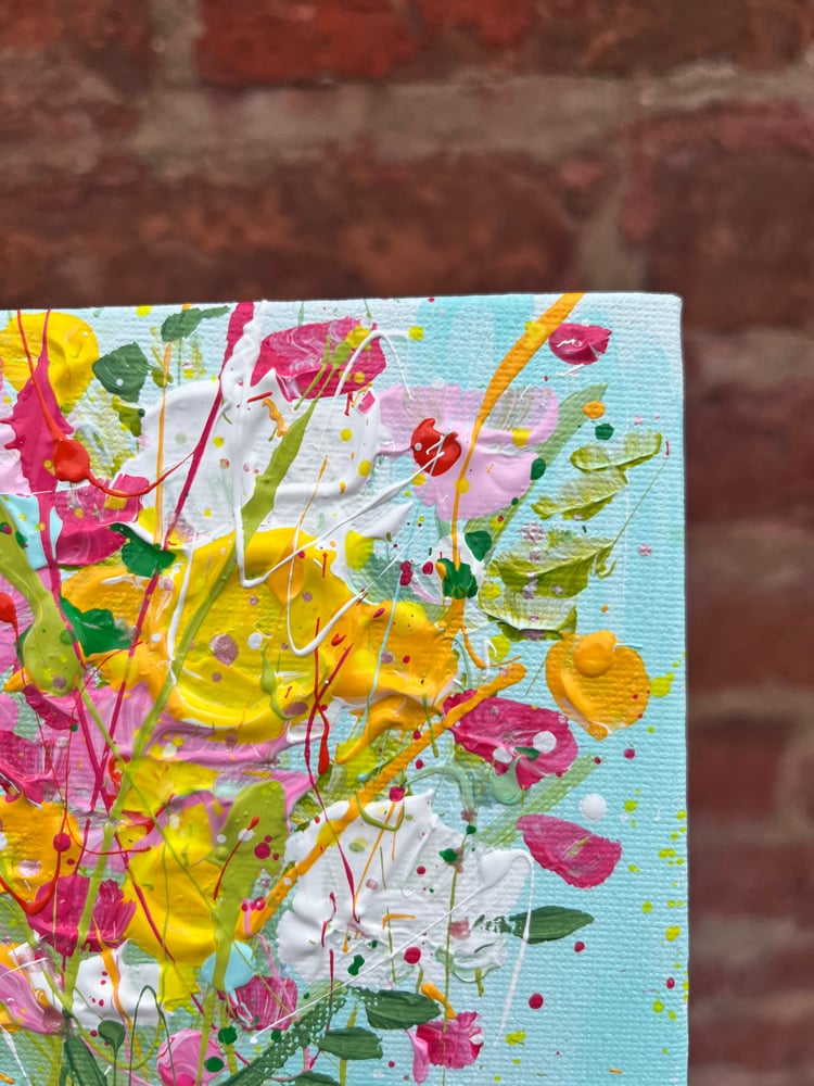 Lovely collectible sized pieces, painted with acrylic paint and shiny inks on canvas boards that measure 13x13cm / 5x5 inch