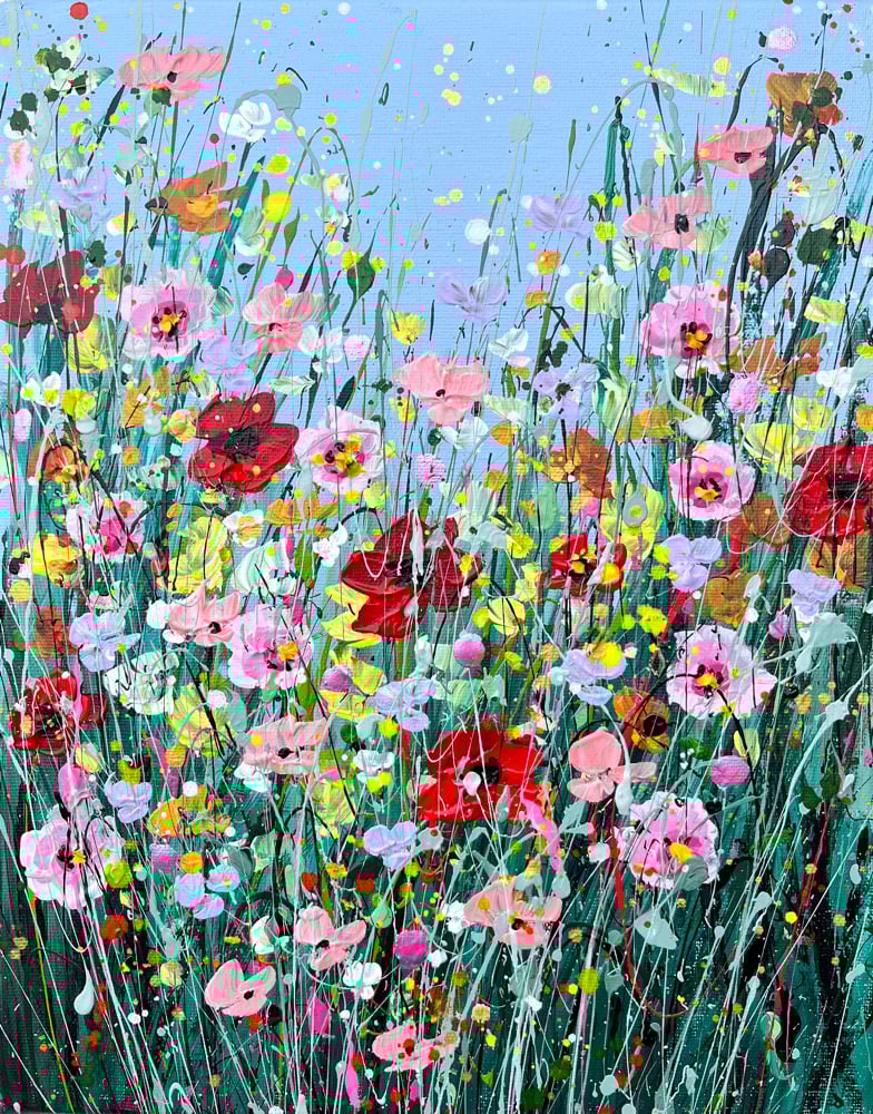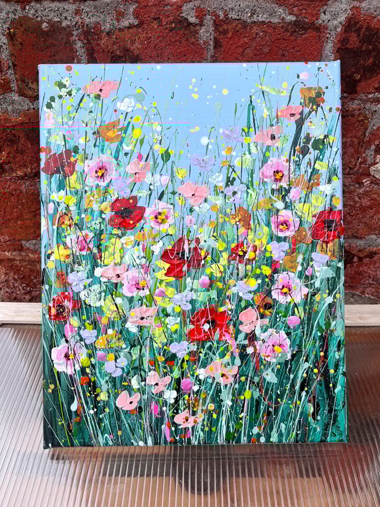 The last of the summer’s wild blooms, painted in acrylic and metallic inks on canvas. Ready to hang
