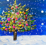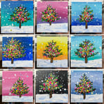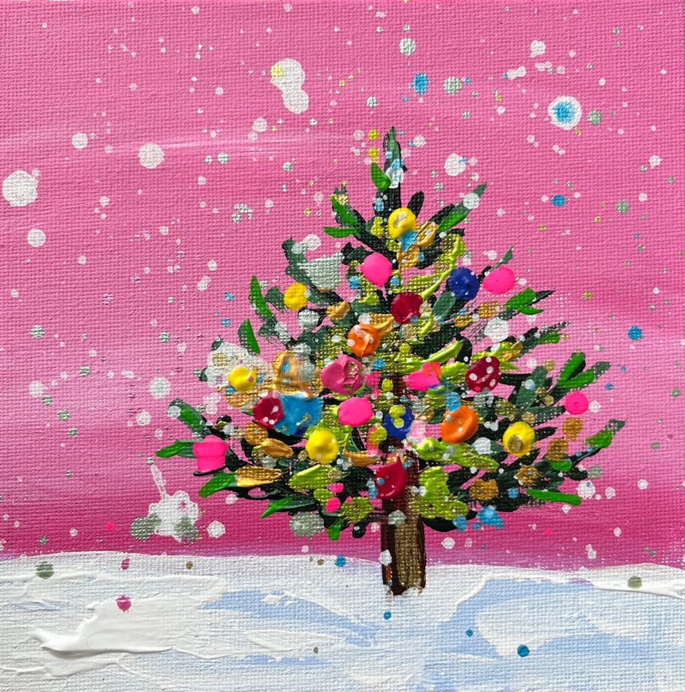Beautiful festive trees on flat canvas boards, can be framed or propped on a shelf.