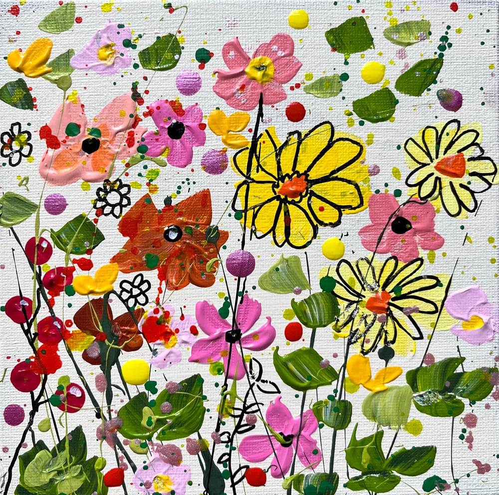 Lovely collectible sized pieces, painted with acrylic paint and shiny inks on canvas boards that measure 15x15cm / 6x6 inch