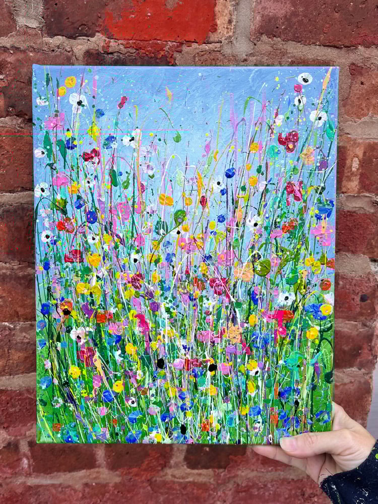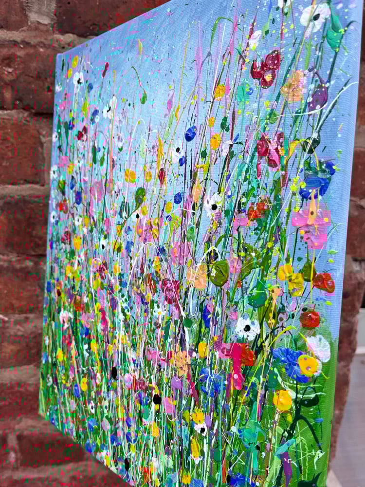 Textured acrylic paint and metallic inks on canvas, ready to hang, signed on the back