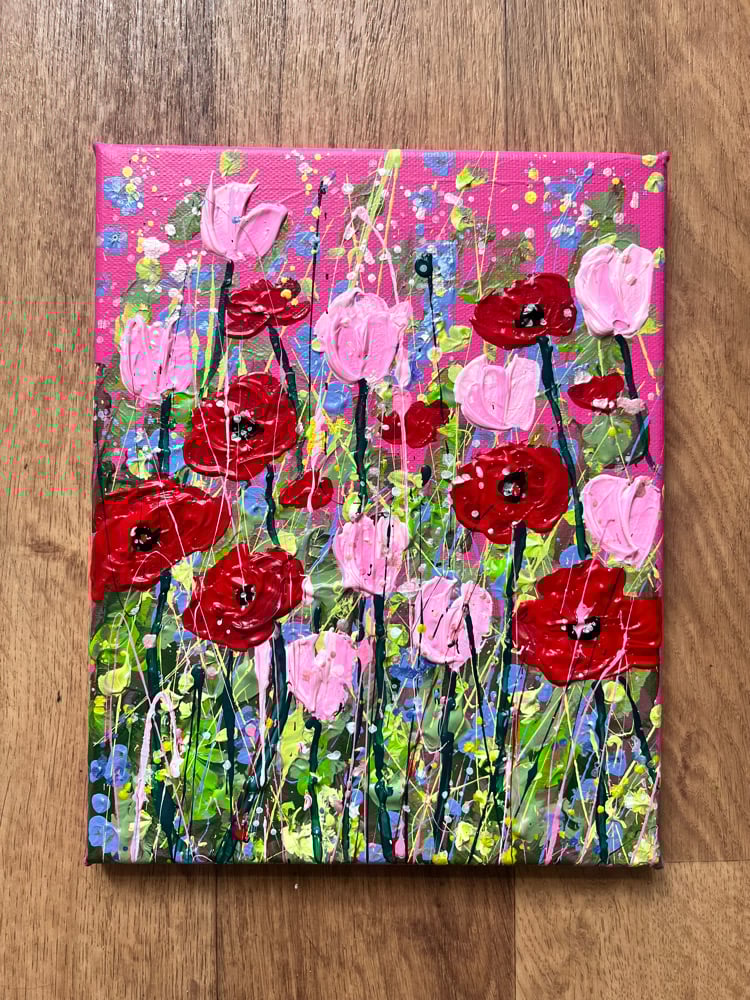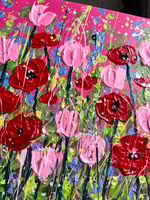 Beautiful bold blooms, painted with textured acrylic paint and metallic inks on canvas.