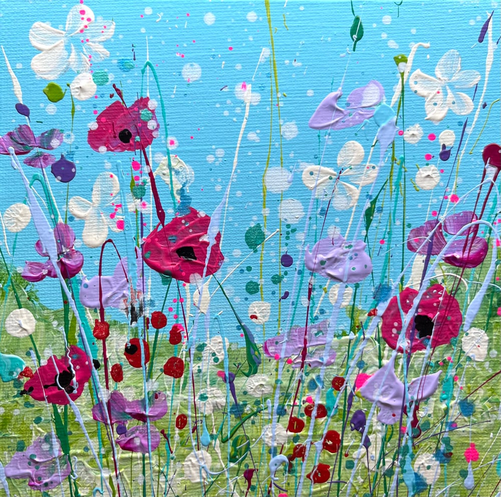 Acrylic painting on flat canvas panel, can be framed or propped on a shelf